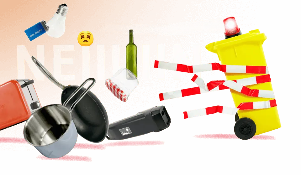 Die Gelbe Tonne ist ausschließlich für Verpackungen aus Kunststoff, Metall und Verbundmaterial bestimmt. Daher dürfen diese Abfälle NICHT in die Gelbe Tonne: